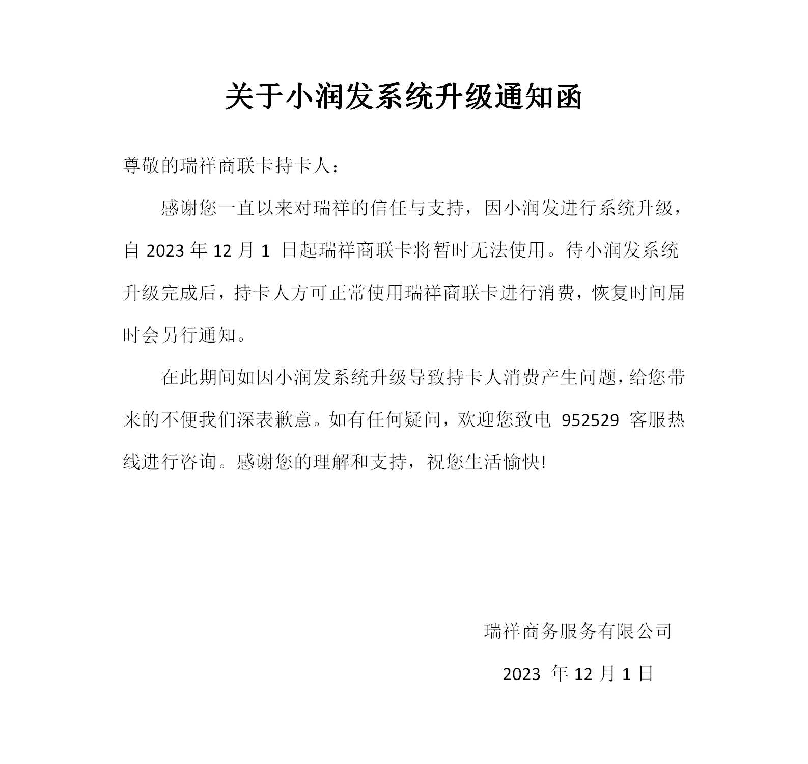 關(guān)于小潤(rùn)發(fā)系統(tǒng)升級(jí)通知